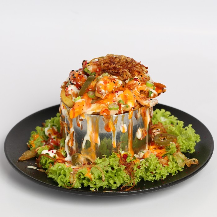 روبيان يُقدَّم مع صلصةٍ كريميَّة القوام، ويتمتَّع بطعم الروبيان الطَّازج المُعزَّزِ بطعم الصلصة المُضافِ إليها.