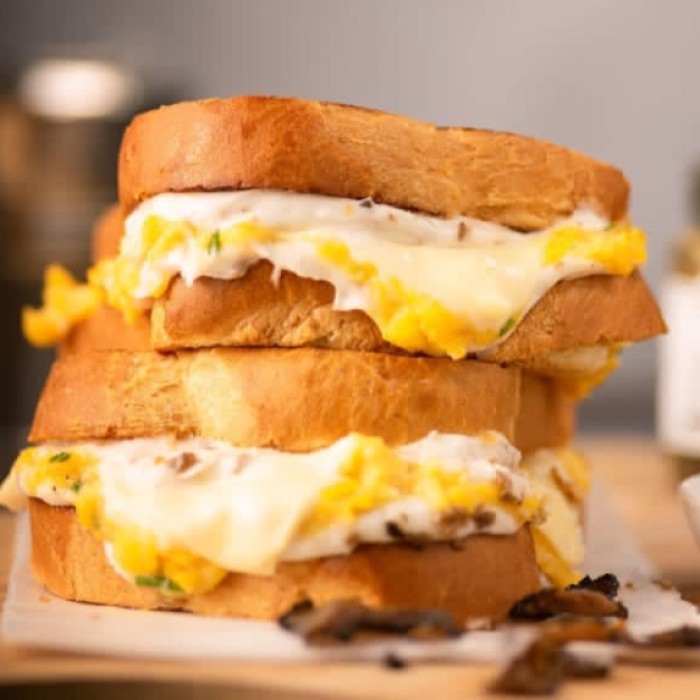ساندويتش بريوش البيض يتكون من خبز البريوش اللذيذ مع وجبة بيض المتكاملة